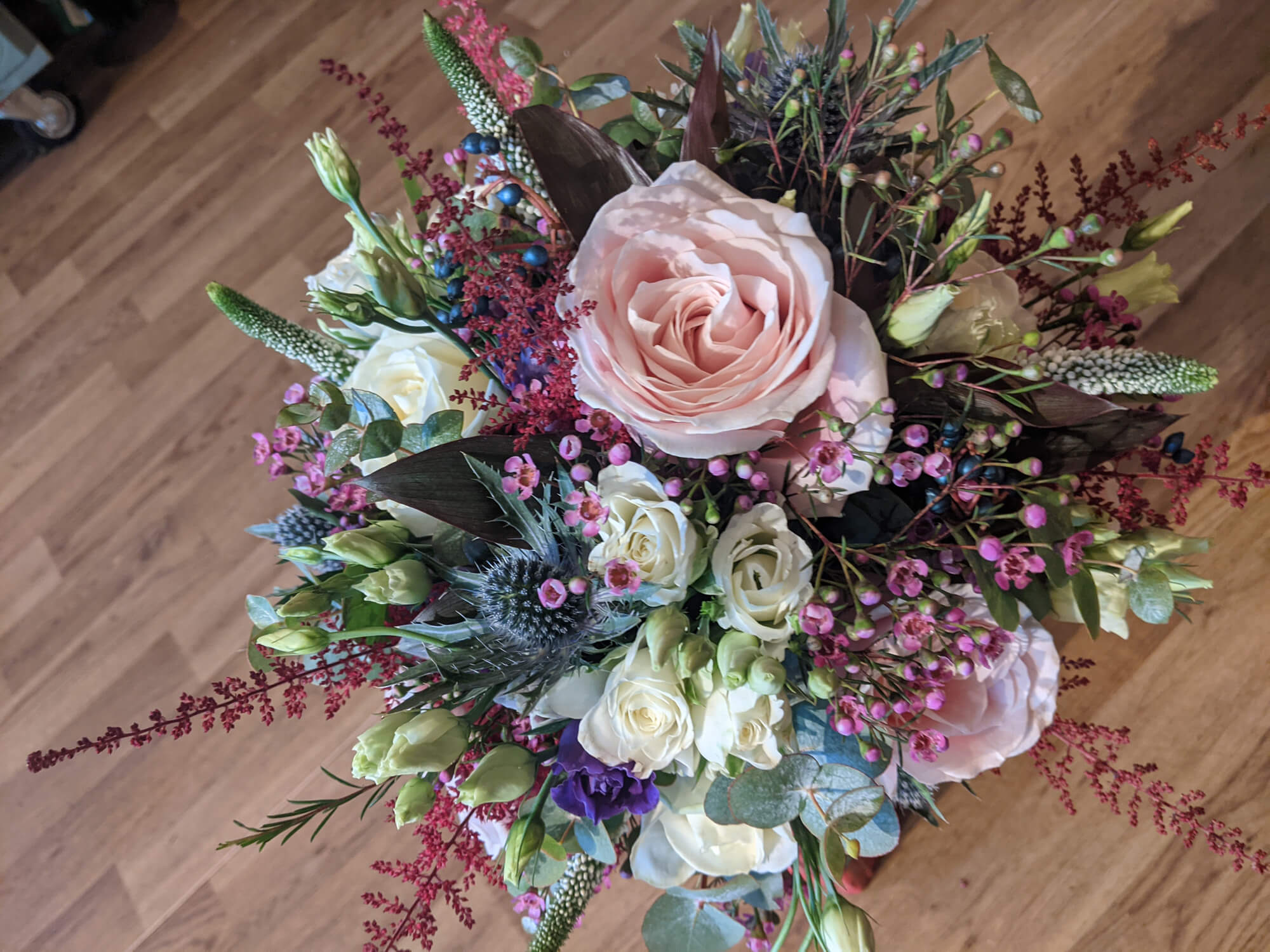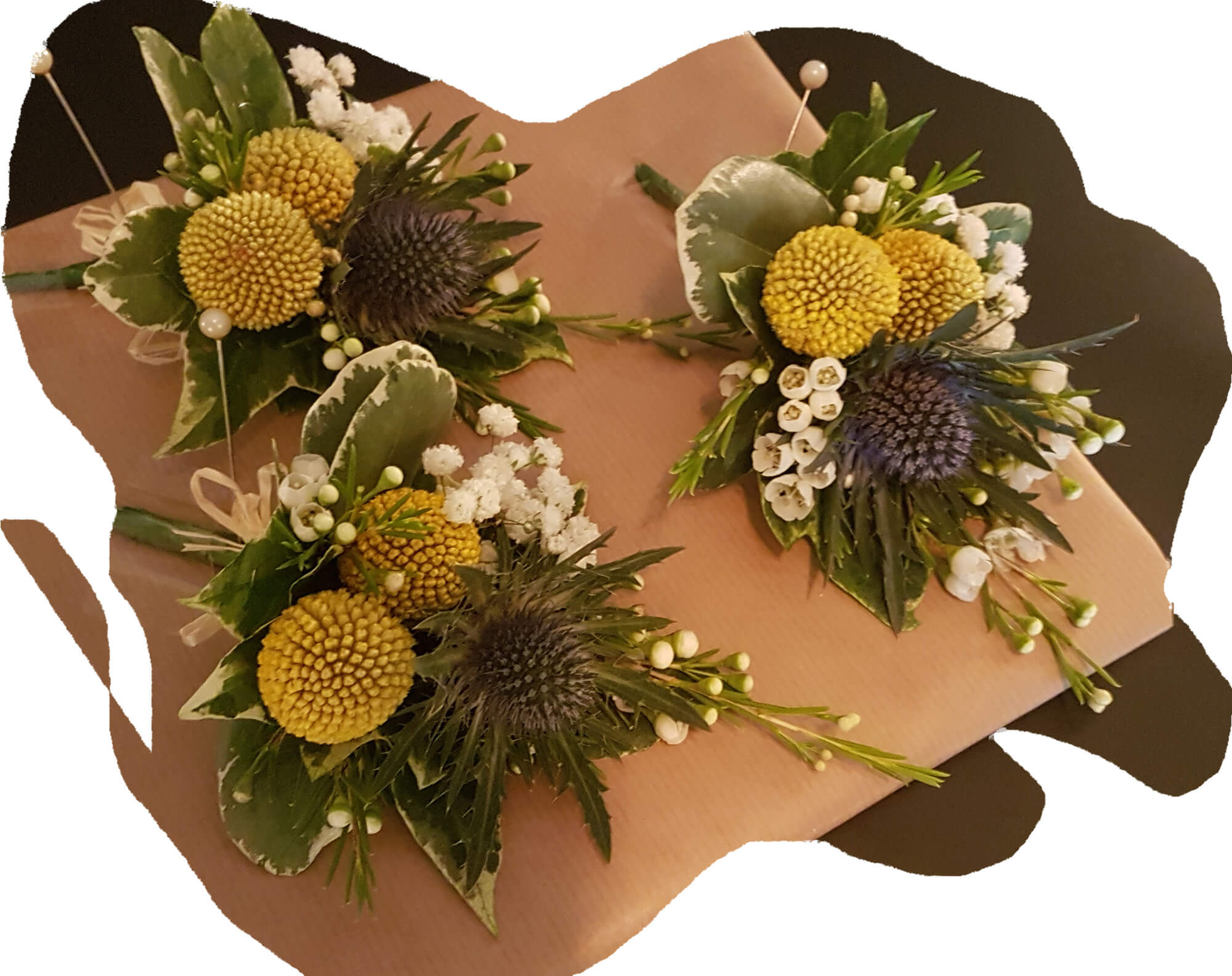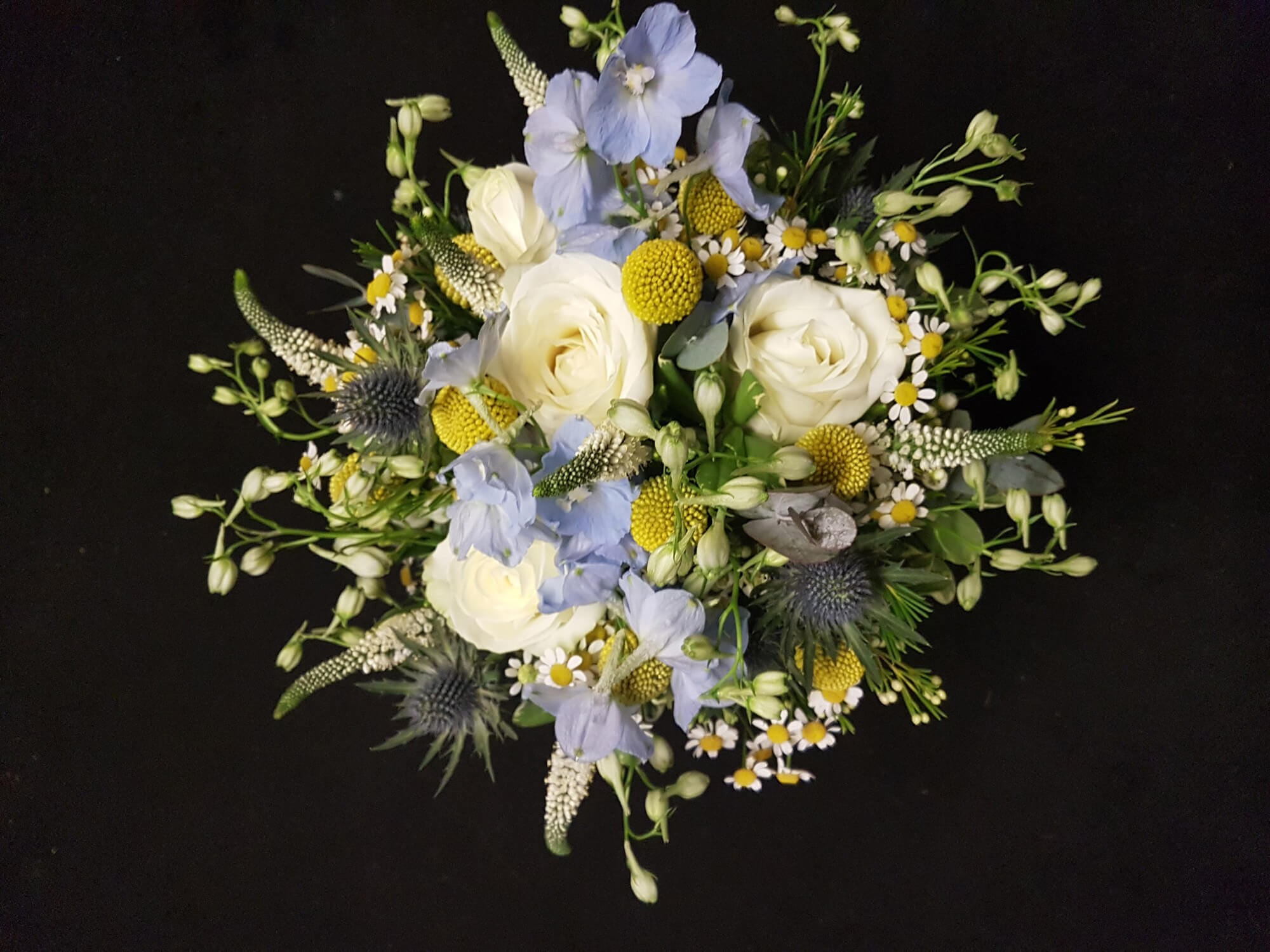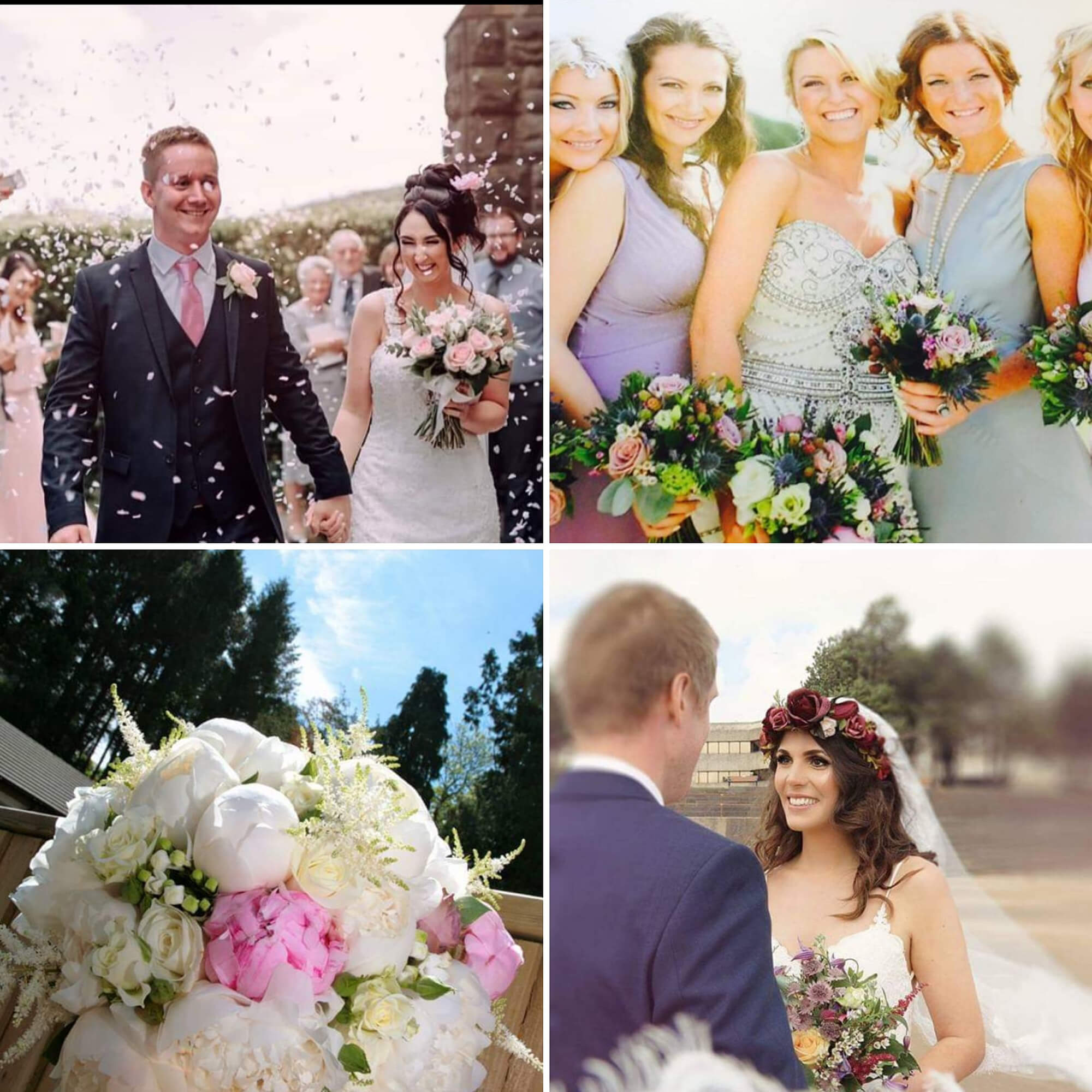 Bridal Bouquet to Buttonholes – from a vintage theme to a contrasting colour scheme.