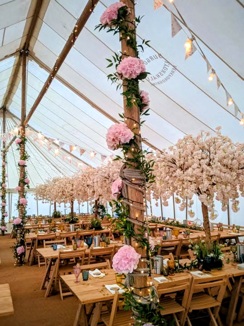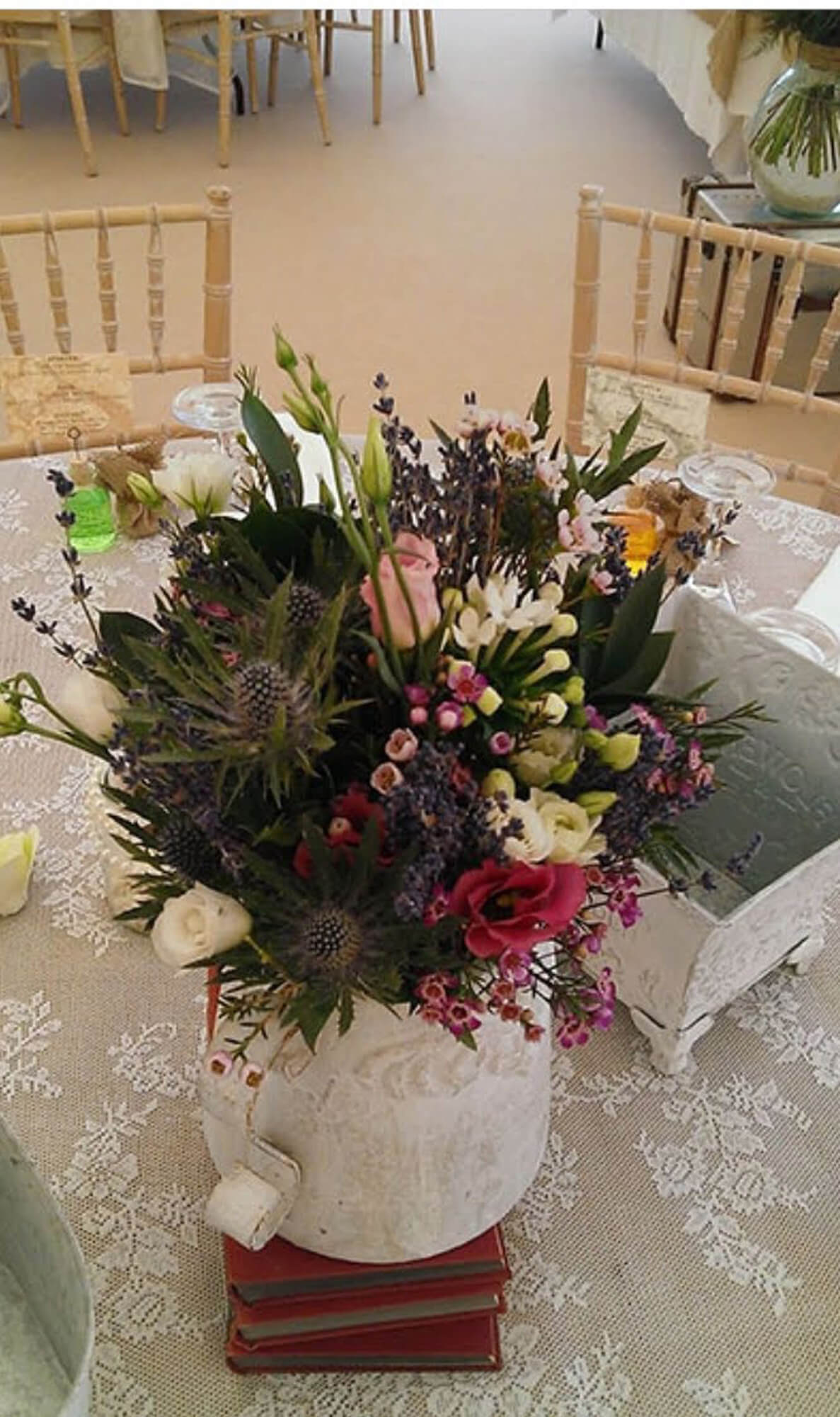 We also provide a loan service on baytrees and a wide selection on vases – or if you have something else in mind that you wish to use for your table centers or you are looking for ideas, we would be only too happy to help create them for you – from vintage jam jars, tins and buckets to classy candelabras.
